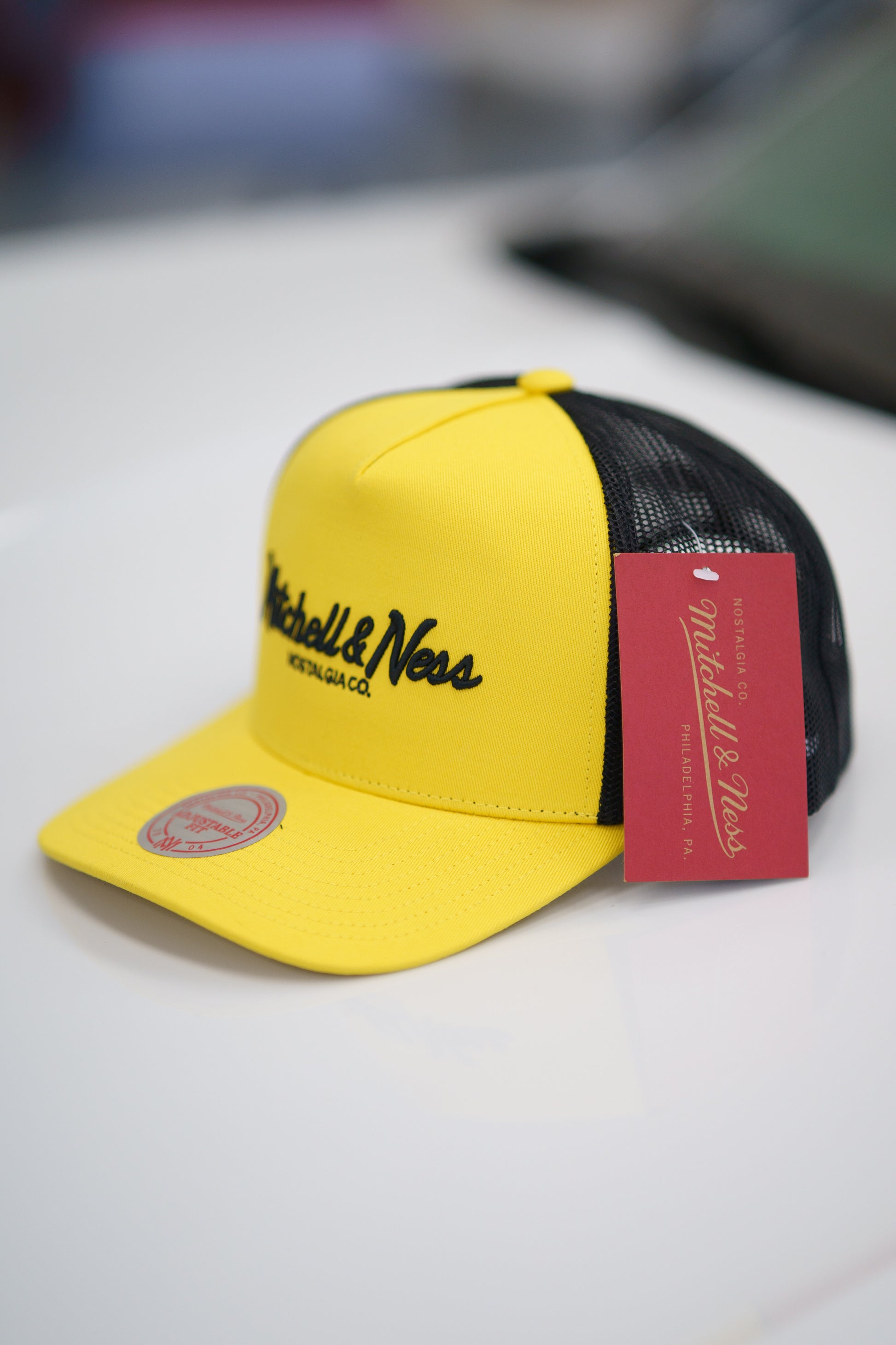 En stilren keps från Mitchell & Ness i en snygg Gul färg med svart nät och brodyr.
