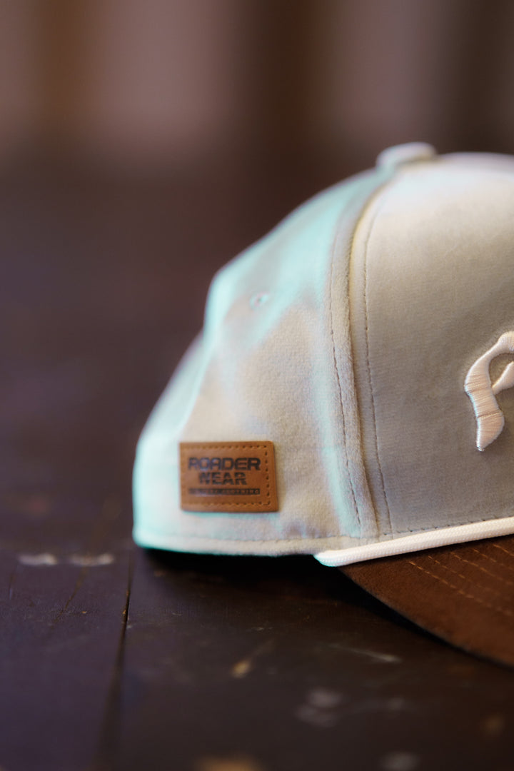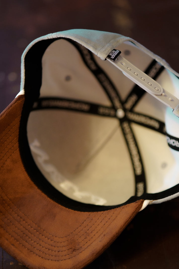 Snygg silvrig 5-panel Baseball keps i sammet men en riktigt snygg 3D brodyr på fronten