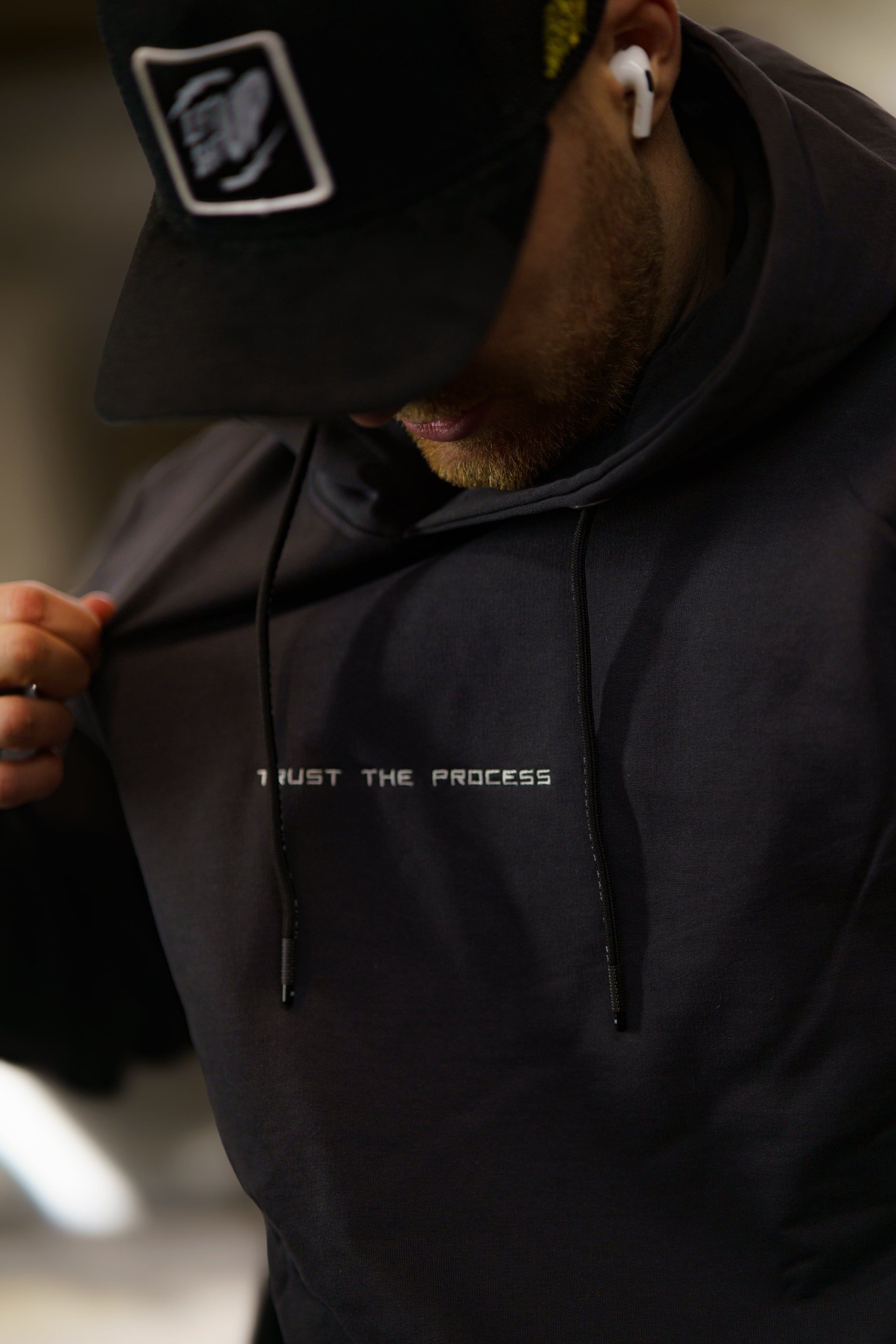 Elevate your wardrobe with our Dark Gery Colored TRUST THE PROCESS Hoodie. This isn't just a hoodie – it's a mantra, a reminder to embrace the journey while cruising with friends in style.