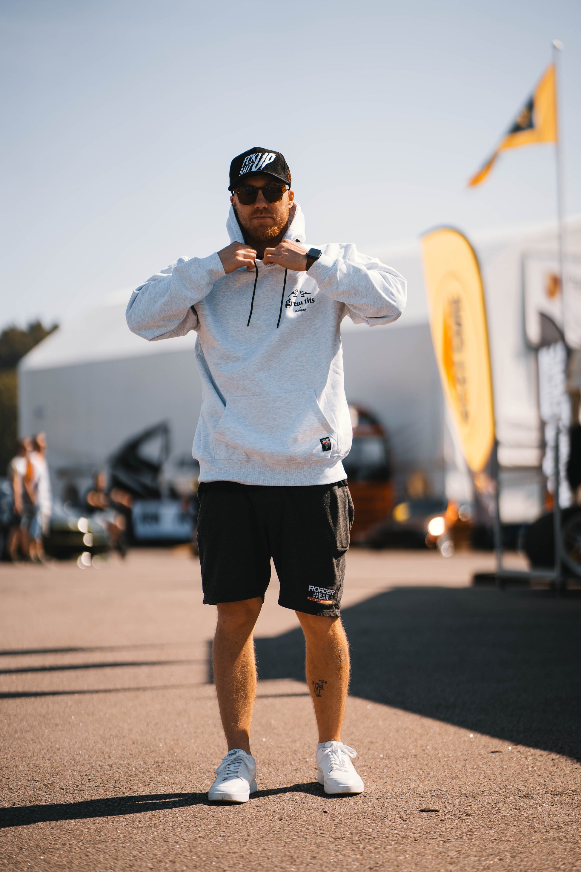 HÜRUNG3 Classic Great Tits Hoodie (Ash Grey) - Lika Cool Som en Isbjörn i Solglasögon! 🕶️🐻❄️