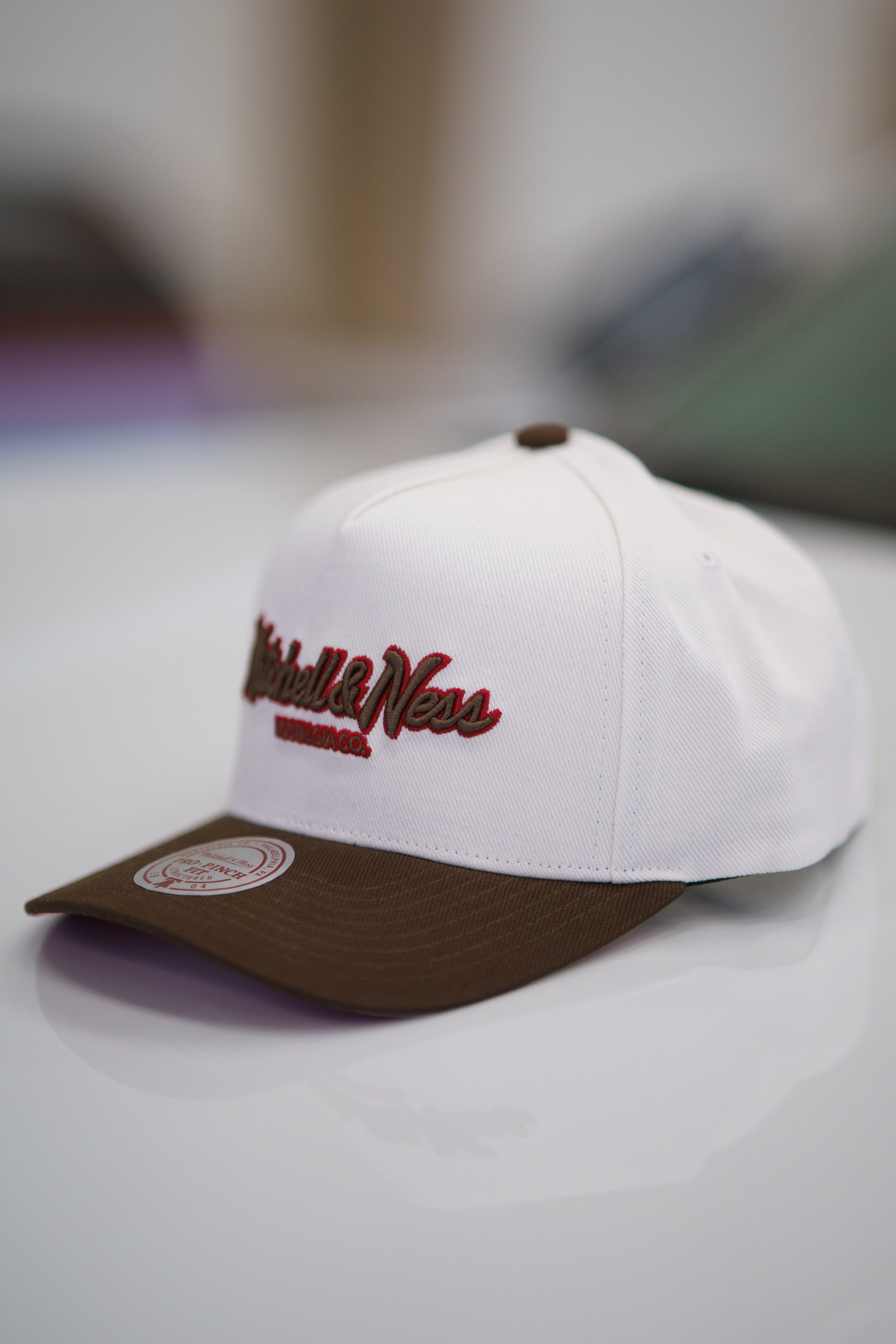 En stilren keps från Mitchell & Ness i en snygg Sand färg med Brun skärm med Röd och brun brodyr.