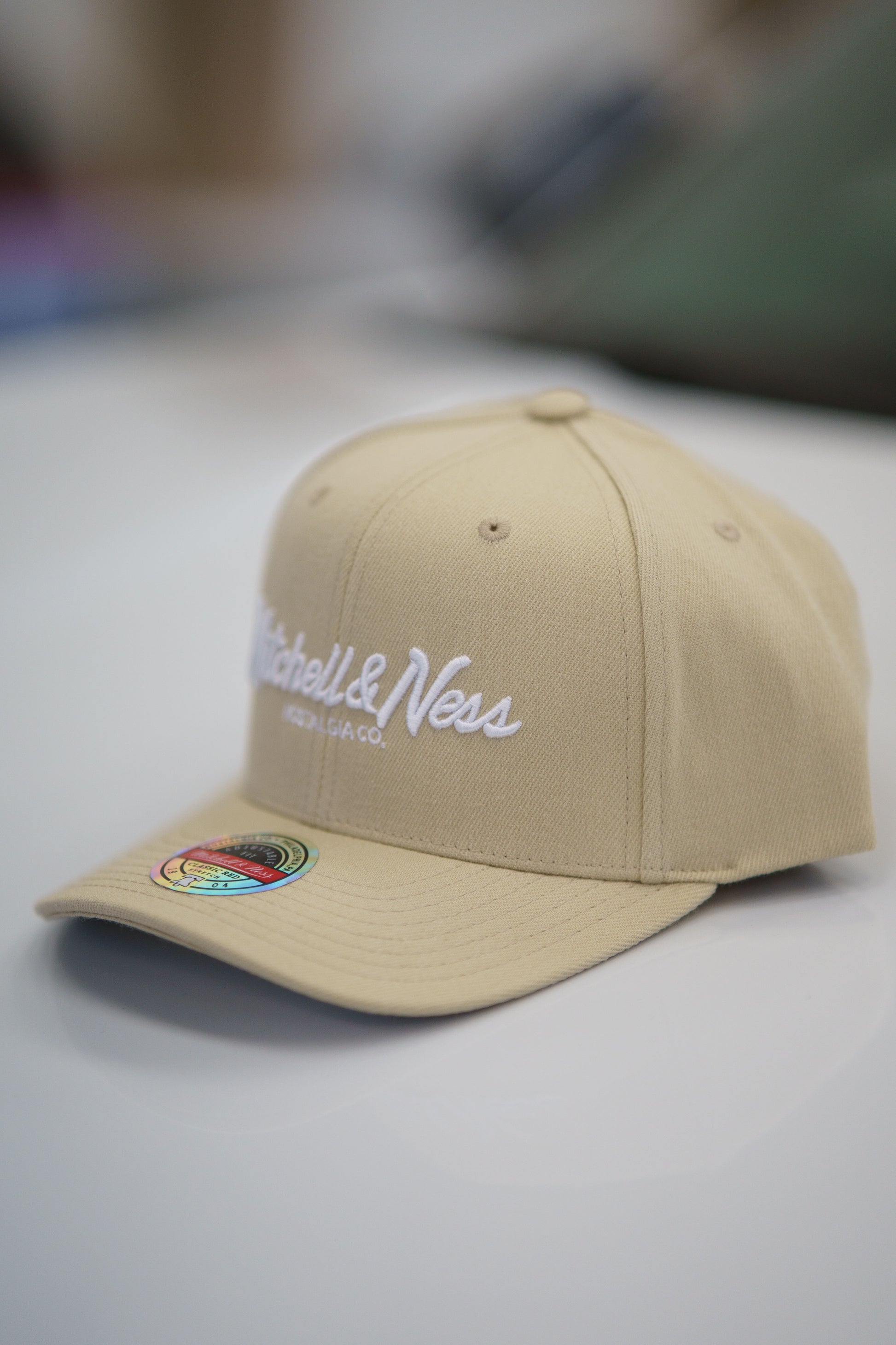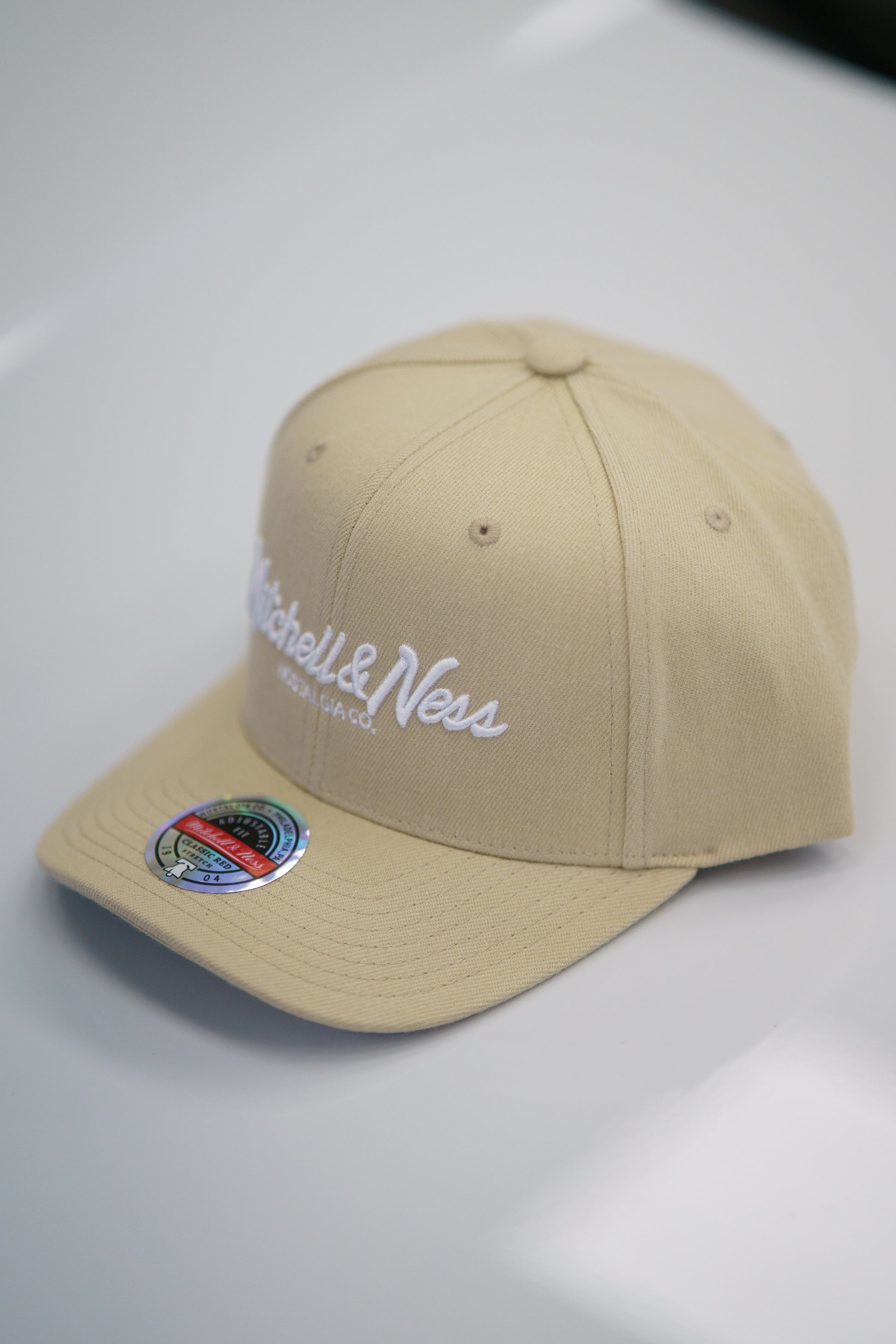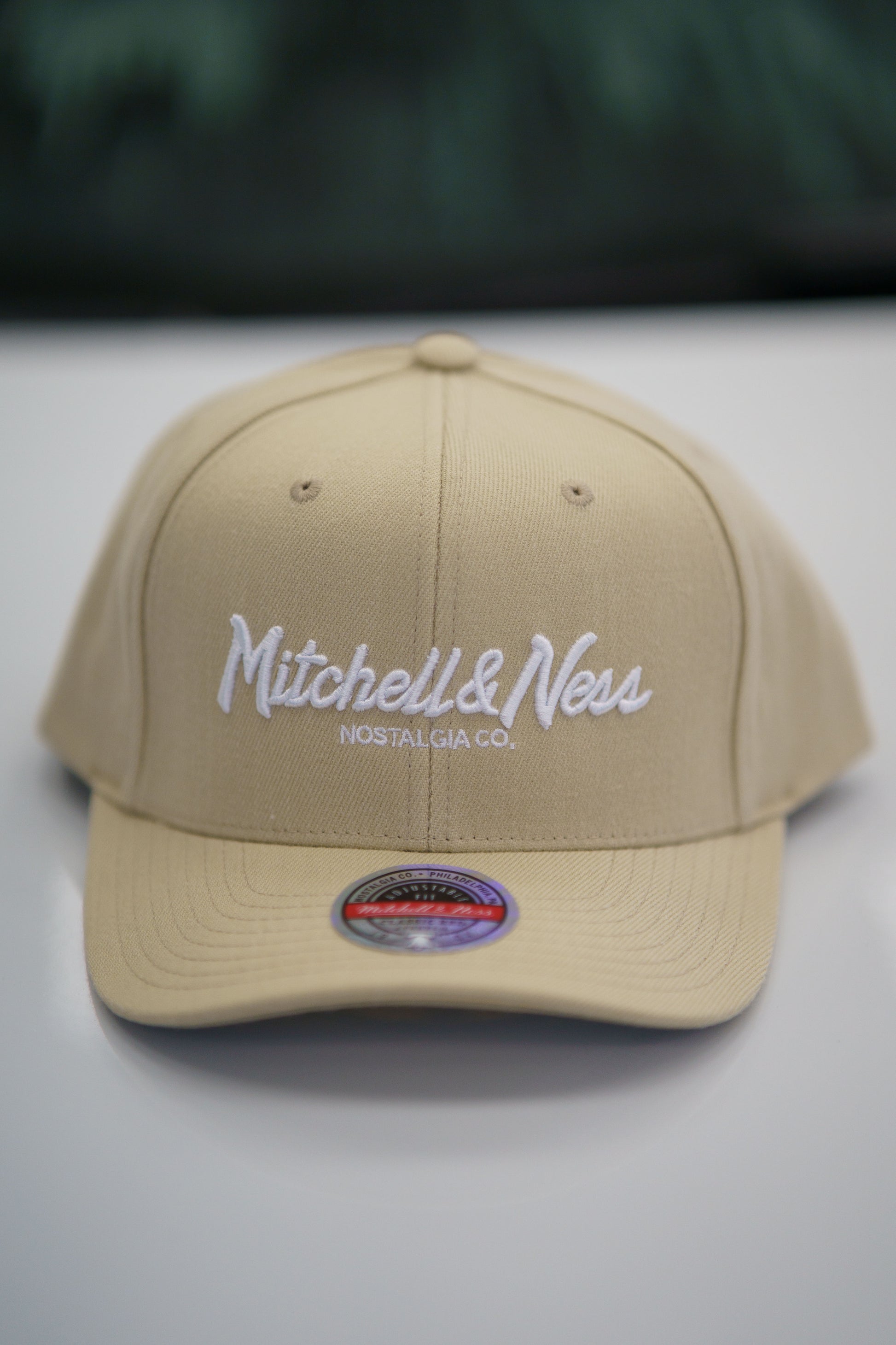 En stilren keps från Mitchell & Ness i en snygg Khaki färg med vit brodyr.