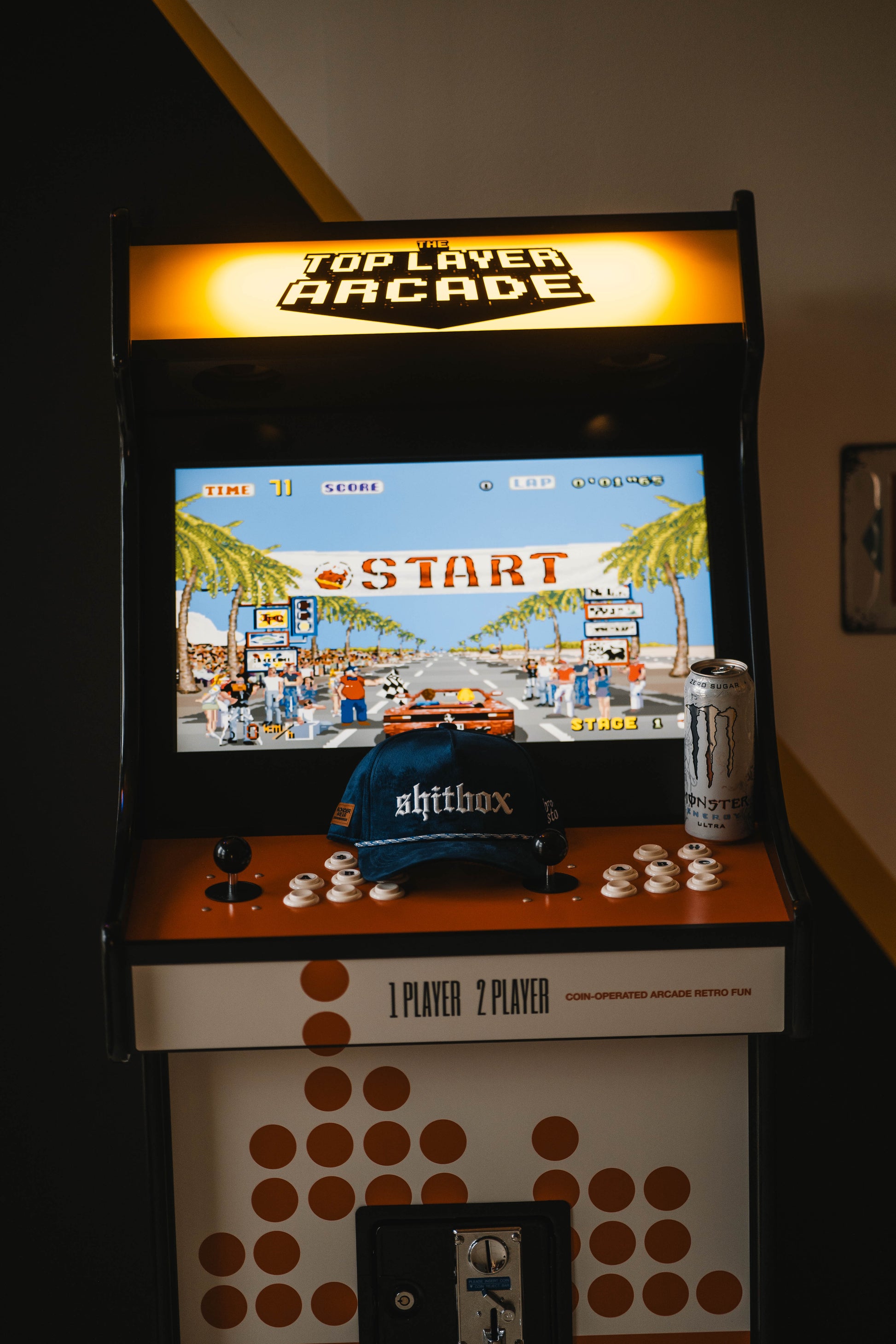 "Shitbox" fram, "broke but stoked" pÄ sidan och en vitblÄ rope-detalj som för tankarna till bÄde retro racing och hemmabyggda monsters.